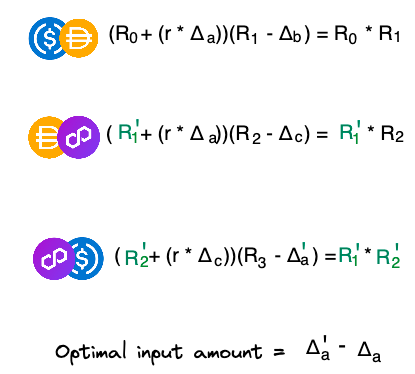 Se somos capazes de calcular os resultados de negociação usando reservas de tokens, podemos determinar a entrada mais ideal ao iterar sobre o nosso caminho e ao calcular a derivada da nossa quantidade de entrada.